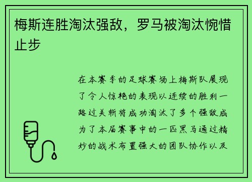 梅斯连胜淘汰强敌,罗马被淘汰惋惜止步