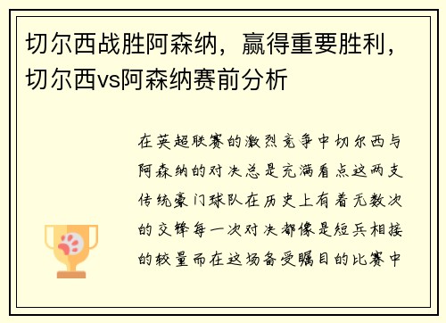 切尔西战胜阿森纳,赢得重要胜利,切尔西vs阿森纳赛前分析